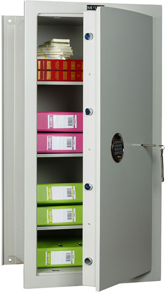 Встраиваемый в стену сейф: Одно из самых распространенных решений для хранения документов, ценностей и денежных средств. Широкое применения обусловлено удобством использования и возможностью замаскировать сейф, но толщина стен может быть ограничивающим фактором. Они устанавливаются в стену, что обеспечивает основную защиту от взлома, а защитные свойства самих встраиваемых сейфов определяются только передней плитой.