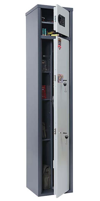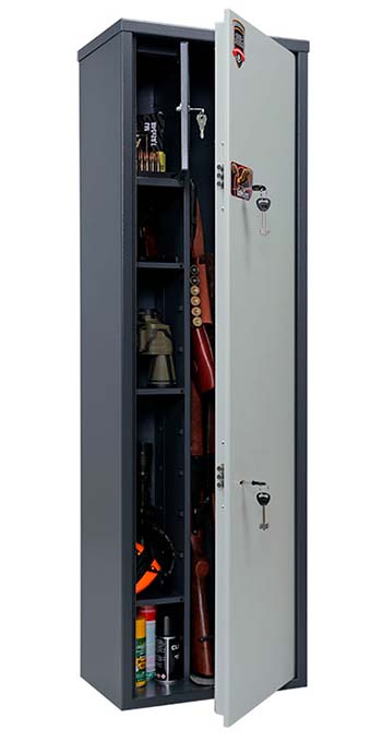 Оружейные сейфы и шкафы: Для частных лиц и организаций, владеющих гражданским или служебным оружием, покупка оружейного сейфа — необходимость, продиктованная требованиями закона. Ст. 59 Постановления правительства РФ 814 от 21 июля 1998 г регламентирует место хранения оружия и патронов: «Принадлежащие гражданам Российской Федерации оружие и патроны должны храниться по месту их жительства с соблюдением условий, обеспечивающих их сохранность, безопасность хранения и исключающих доступ к ним посторонних лиц, в запирающихся на замок (замки) сейфах, сейфовых шкафах или металлических шкафах для хранения оружия.